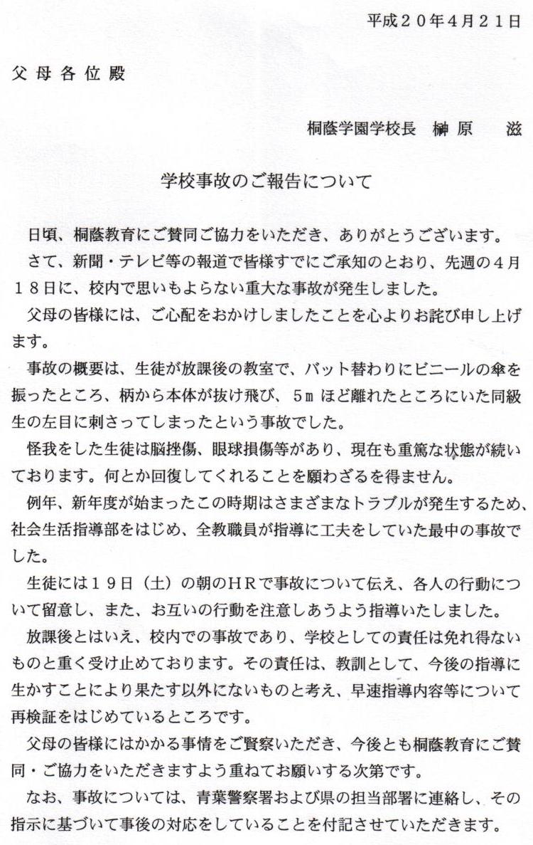 今日もらってきましたwなんか桐蔭側の責任じゃないみたいな言い方してるよw